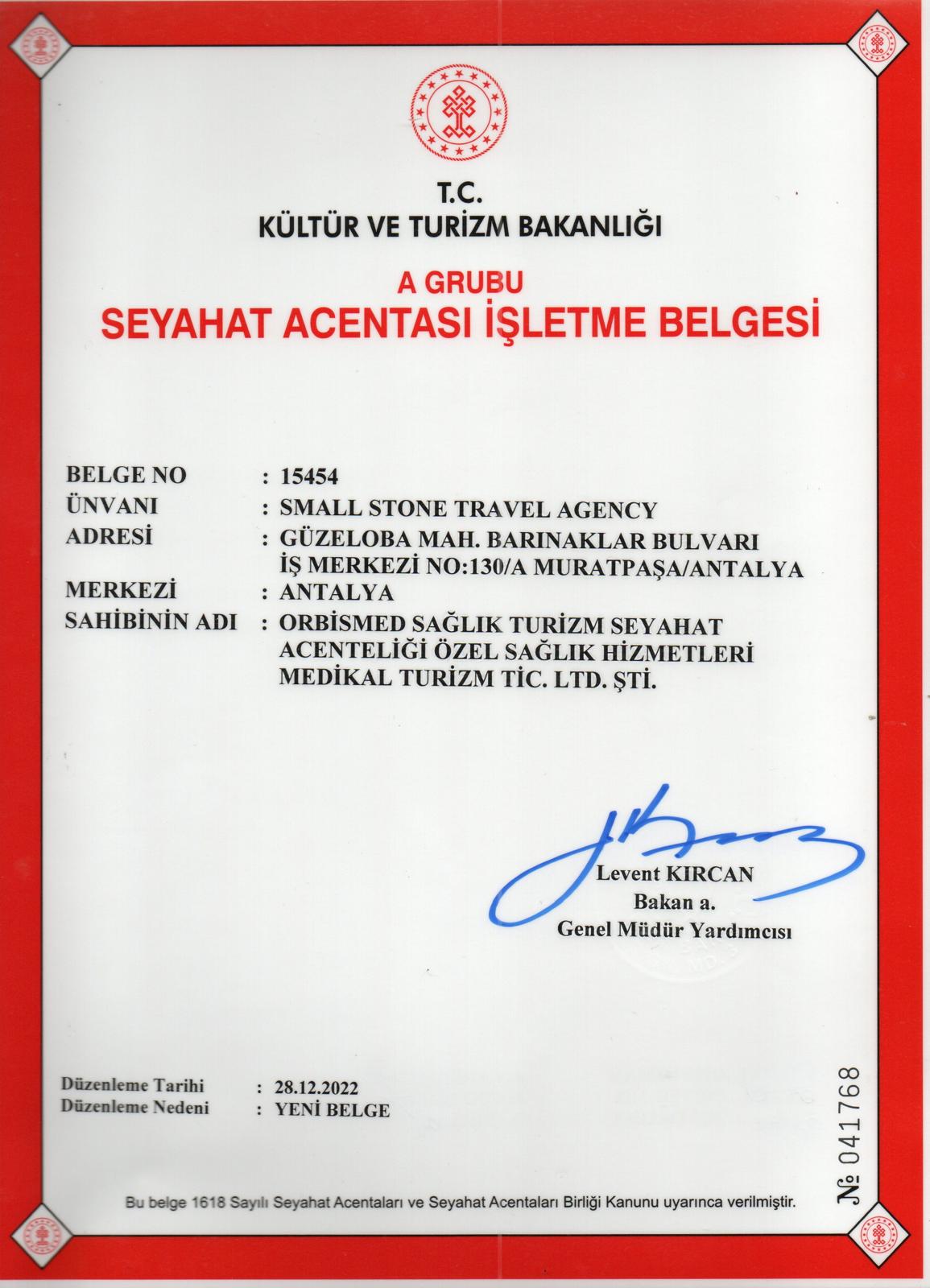 This certificate has been issued pursuant to Law No. 1618 on Travel Agencies and the Association of Travel Agencies. Certificate No: 1545.